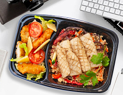 1.Салат Цезарь с цыпленком 2.Киноа с кальмаром и овощами