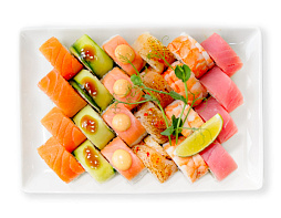 Филадельфия фреш маки, Акита маки, Сяке авокадо маки, Кунсей Сяке маки, Нигири Эби, Нигири Магуро, Н...