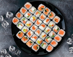 Окунь темпура, японский омлет, грибы, соус Спайси, сливочный сыр, такуан, соус Терияки.