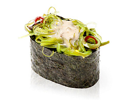 Копченый лосось, темпура, лосось жареный в соусе Терияки, майонез.