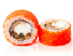 Креветка темура, огурец, сливочный сыр, сыр чеддер, соус гриль