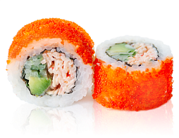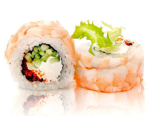 Креветка, сливочный сыр, огурец, икра масаго.
