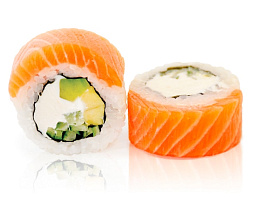 Лосось жареный в соусе Терияки, сливочный сыр, огурец, соус Спайси