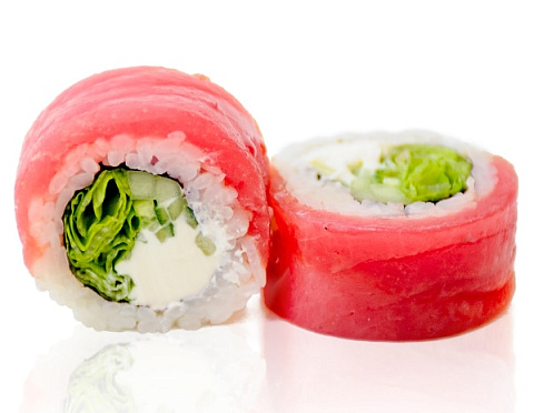 Тунец, огурец, сливочный сыр, салат Айсберг и кунжутное масло.